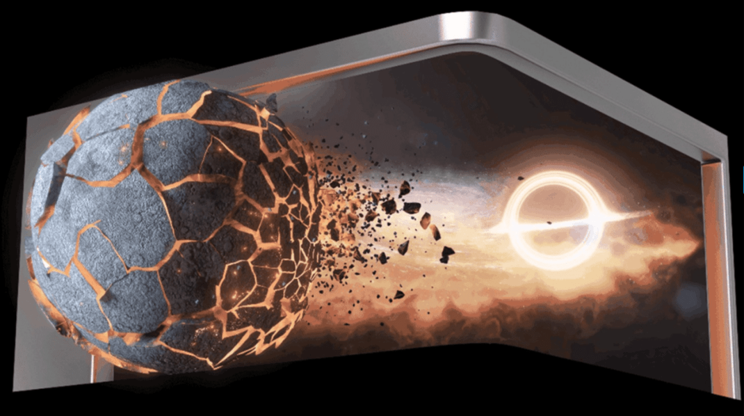 我們不難看到大屏上的畫面是經(jīng)過扭曲處理的,制作的畫面也只能適應(yīng)于這個屏幕,每個裸眼3D的落地,都會有專屬的定制方案,通過腳本、建模場景搭建,以及后期的燈光渲染把一些抽象的東西具體化。用電腦、電視都沒有辦法正常觀看,所以制作成本高,限制多。