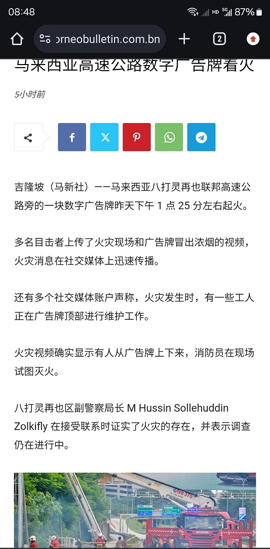 與此同時,雪蘭莪消防救援局行動中心在一份聲明中表示,該部門于下午 1 點 15 分通過 MERS 999 熱線接到求救電話,稱八打靈再也天主教小學附近的數字廣告牌發生火災。